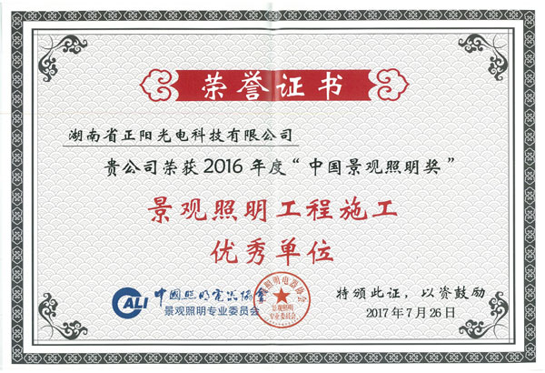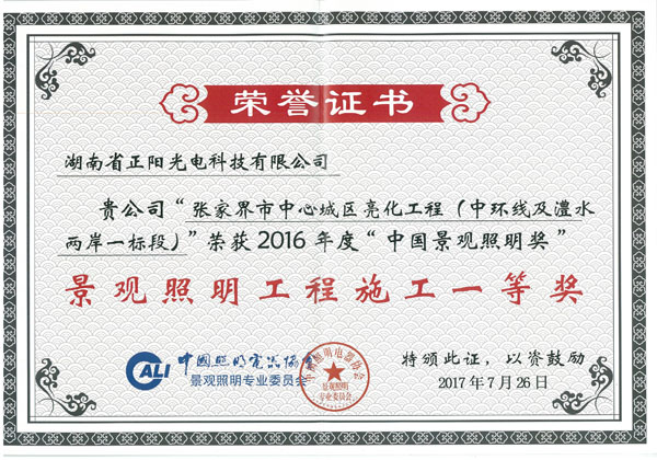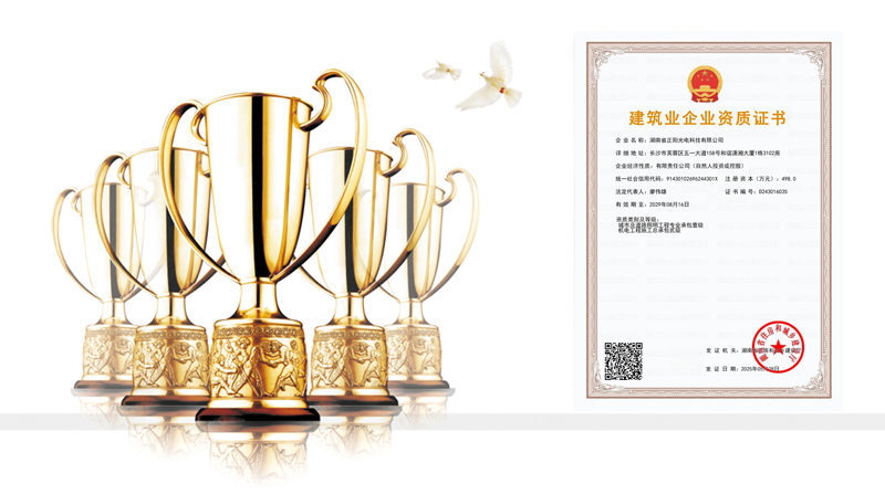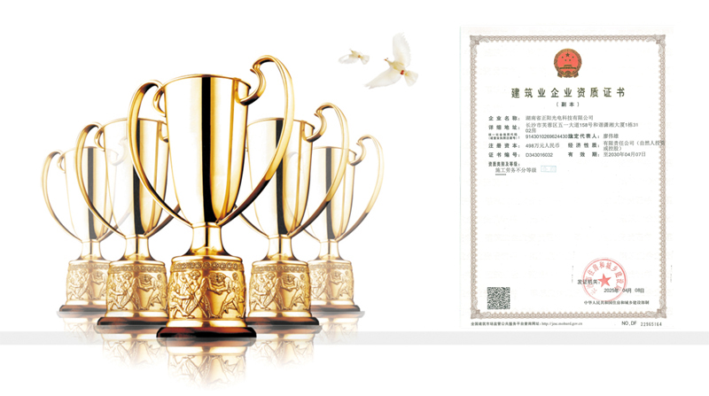 湖南省正陽光電科技有限公司是一家從事亮化工程及大型燈光藝術(shù)的設(shè)計、制作、安裝和維護(hù)于一體的專業(yè)化公司。公司資質(zhì)齊全、管理嚴(yán)謹(jǐn)、技術(shù)先進(jìn)、實力雄厚,取得了城市及道路照明工程專業(yè)承包壹級資質(zhì)、照明工程設(shè)計專項甲級資質(zhì)、機電工程施工總承包貳級資質(zhì)、施工勞務(wù)等資質(zhì)、國家高新技術(shù)企業(yè)、國家“重質(zhì)量·守誠信”示范企業(yè)。